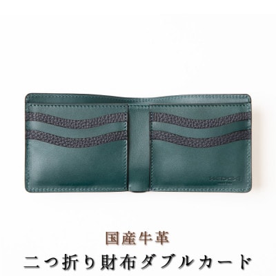 HEDGE たつの市産牛革で仕立てた、ダークグリーンの二つ折り財布[ダブルカードタイプ]