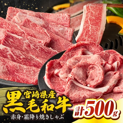 宮崎県産黒毛和牛赤身(ウデまたはモモ)・霜降り焼きしゃぶ500g