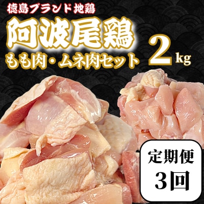 【定期便3回】阿波尾鶏 もも肉・むね肉セット2kg(500g×4P) 鶏肉 徳島 地鶏 とり肉