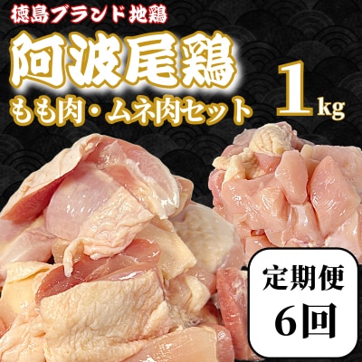 【定期便6回】阿波尾鶏 もも肉・むね肉セット1kg(500g×2P) 鶏肉 徳島 地鶏 とり肉