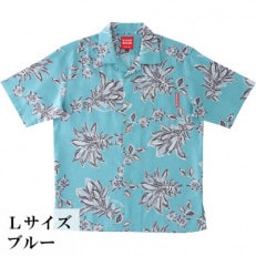 【マンゴハウスのかりゆしウェア】メンズ Lサイズ ブルー アジアンカームデイゴ 241156