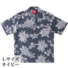 【マンゴハウスのかりゆしウェア】メンズ Lサイズ ネイビー いちゃりばシーサーパイン 251135