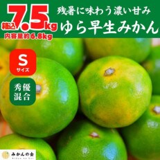 ゆら早生 みかん 小玉ちゃん 箱込 7.5kg (内容量 6.8kg) 2Sサイズ以下 秀優混合