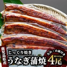 【2023年7月中旬発送】<鹿児島県産>うなぎ蒲焼じっくり焼き約165g×4尾(E-013)