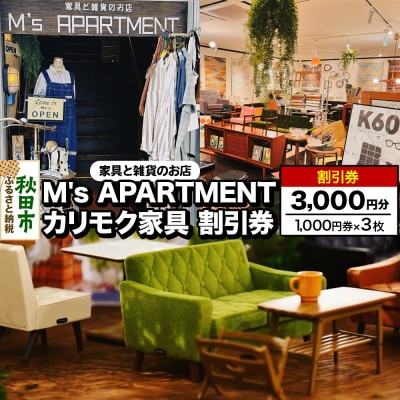 「M's APARTMENT カリモク家具」割引券 1,000円券 3枚|15_drl-160301