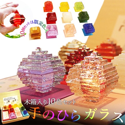 色ガラス 『なりたい自分に変わる【手のひらガラス】』9色+特典金色 10色セット 木箱入り ギフトに