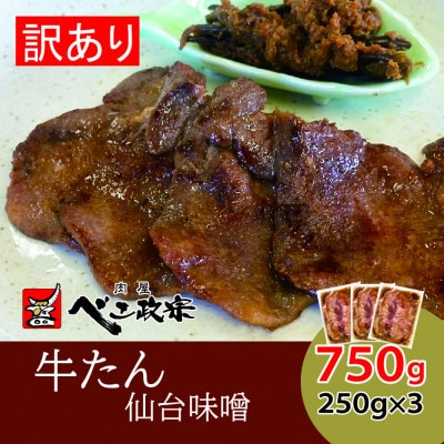 [仙台名物]べこ政宗【訳アリ牛タン仙台味噌】750g(250g×3パック)