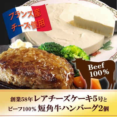 13『クリームチーズケーキ5号とレアチーズケーキ5号のハーフ&ハーフ』と『短角牛100%ハンバーグ2個』