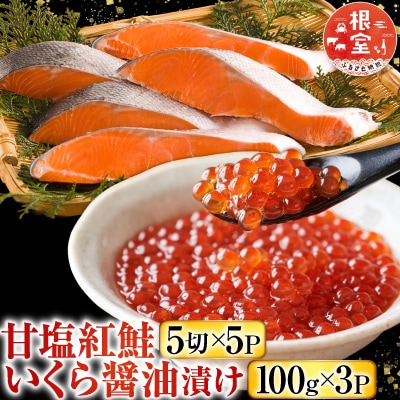 37甘塩紅鮭5切×5P、いくら醤油漬け100g×3P F-30003