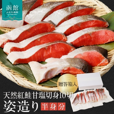 62天然紅鮭甘塩切身 10切(姿造り半身分)贈答箱入_HD139-001