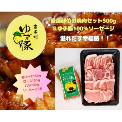 37【高知のブランド豚/ゆず豚】厳選部位の焼肉セット500g+ソーセージ5本入り 112003