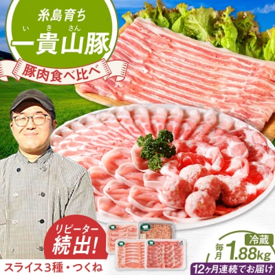※こちらは全12回お届けの定期便です。産直市場で大人気!甘味と旨味でやみつきになる「一貴山豚(いきさんぶた)」!「一貴山豚(いきさんぶた)」は、自然豊かな糸島市で育ったブランド豚です。食べると柔らかく、上質な脂の甘味と、肉の旨味が口いっぱいに広がります。
