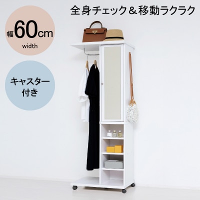 ミラー付ハンガーラック ワゴン ホワイト 62137