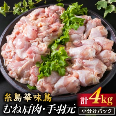 9【合計4kg】糸島産 華味鳥 むね肩肉 2kg/手羽元 2kg【糸島ミートデリ工房】[ACA098]