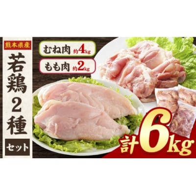 64熊本県産 若鶏むね肉 約2kg×2袋/もも肉 約2kg×1袋 計3袋《30日以内に出荷予定(土日)》