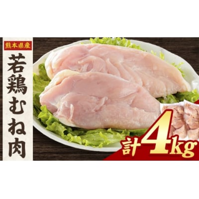 62熊本県産 若鶏むね肉 合計4kg(約2kg×2袋) 《30日以内に出荷予定(土日祝除く)》