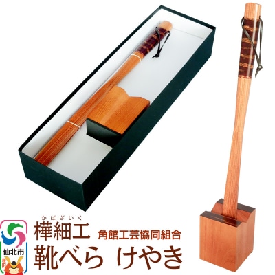 【伝統工芸品 角館樺細工 角館工芸協同組合】国産けやき靴べら・スタンドセット