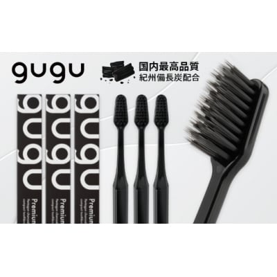 3guguペンタゴンコンパクト備長炭ハブラシ ブラック3本(二段植毛・ふつう) E070