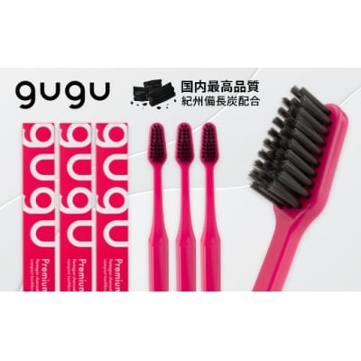 4guguペンタゴンコンパクト備長炭ハブラシ ピンク3本(フラットカット・やわらかめ) E071