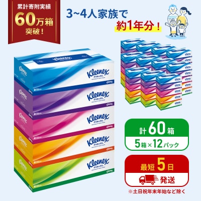 4クリネックスティシュー( 5箱 × 12パック入り )ティッシュペーパー[No.5704-0182]
