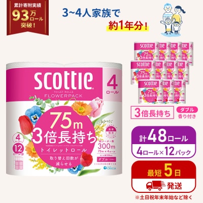 5トイレットペーパー スコッティ フラワーパック 48個 ダブル|15_nsc-101201da