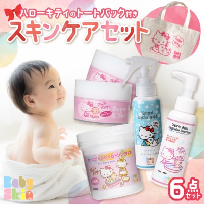 ~北海道産の無添加ベビースキンケア キティセット~北海道産てんさい糖を使用し、合成香料・着色料・防腐剤を使用していません。沐浴剤、シュガースクラブを含むスキンケアセット。ハローキティのトートバック付き。シュガースクラブは新生児集中治療室(NICU)での使用経験に基づく試験結果が、日本小児看護学会誌に報告されています。