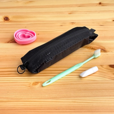 5【黒】洗えて清潔!メッシュ×ナイロンのハブラシポーチ