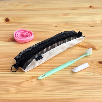 6【白】洗えて清潔!メッシュ×ナイロンのハブラシポーチ