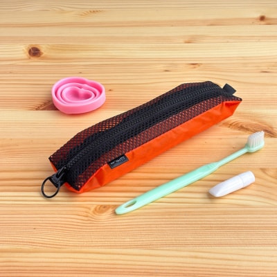 7【オレンジ】洗えて清潔!メッシュ×ナイロンのハブラシポーチ