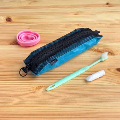 10【水色】洗えて清潔!メッシュ×ナイロンのハブラシポーチ