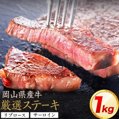 66岡山県産牛 ステーキ サーロインorリブ 交雑牛 1kg《60日以内に出荷予定(土日祝除く)》