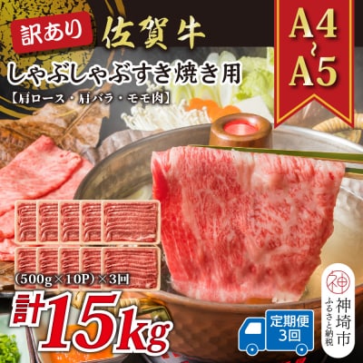 45【3か月定期便】訳あり【A4~A5】佐賀牛しゃぶすき用 5kg(小分け)×3回(H112214)