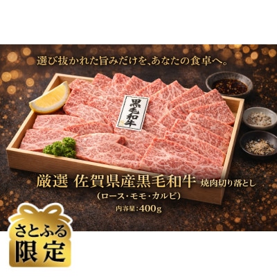 3【さとふる限定】【厳選】佐賀県産黒毛和牛焼肉切り落とし400g(ロース・モモ・カルビ)(吉野ヶ里町)