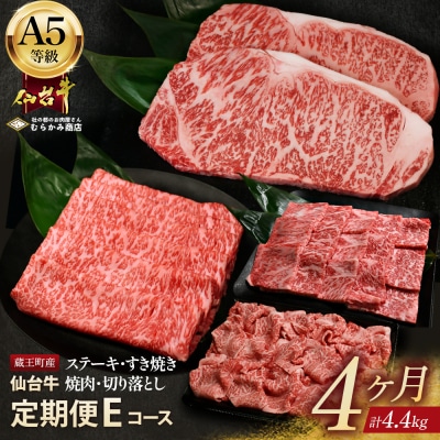 8「A5仙台牛Eコース」 ステーキ・焼肉・すき焼き・切り落とし 全4回 【04301-0961】