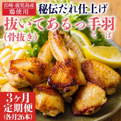 5【定期便】鹿嶋ストアー特製南九州産鶏の骨抜き手羽先26本×3回 TF801