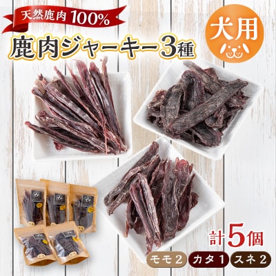 16【犬用】無添加鹿肉ジャーキー5個セット(モモ2個・カタ1個・スネ2個)