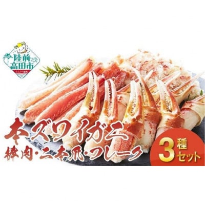 6【本ズワイガニ】豪華3種セット(棒肉・二本爪・フレーク)