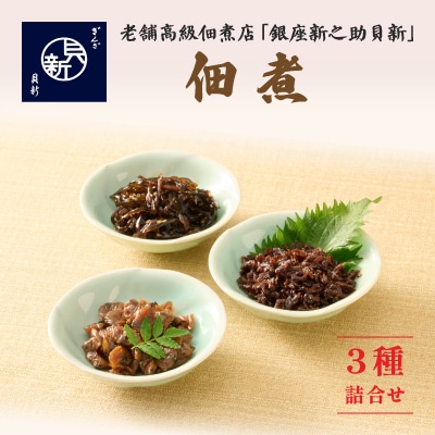 老舗高級佃煮店「銀座新之助貝新」の佃煮3種詰合せ。