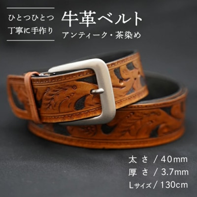 41牛革ベルト(花柄・アンティークコードバン染め) [BE016ya-M]