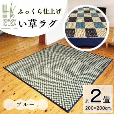 62ふっくら仕上げ い草ラグ《チェック柄×ブルー》 200cm×200cm