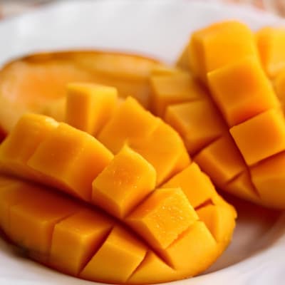 旬の時期に丁寧に手作業で皮を剥き一口サイズにカットした、南国の甘いマンゴーを1.2kgお届けします。