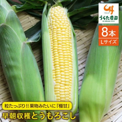 6果物みたいに極甘!早朝収穫とうもろこし Lサイズ (300g)× 8本/ウラタ農園[ALI003]