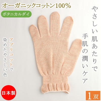6おやすみ ハンドケア オーガニックコットン 100% 手袋 1双 アプリコットで染めたやさしい色合い