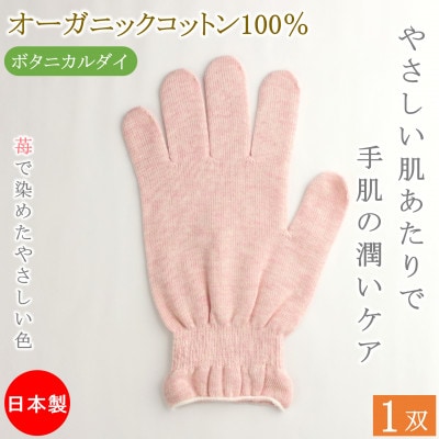 7おやすみ ハンドケア オーガニックコットン 100% 手袋 1双 苺で染めたやさしい色合い