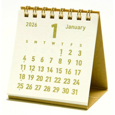 18美濃和紙を使ったシルクスクリーン印刷オリジナル卓上カレンダー【ゴールド×生成り】