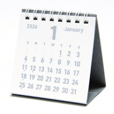 21美濃和紙を使ったシルクスクリーン印刷オリジナル卓上カレンダー【白×ぎんねず】