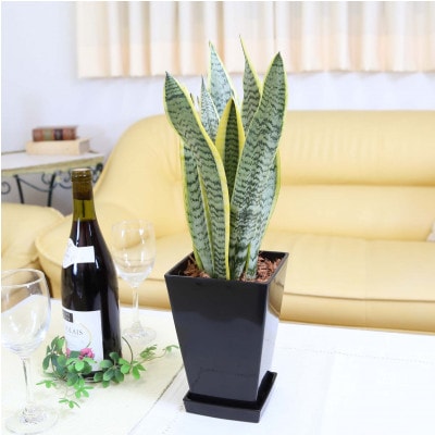 サンスベリア 5号 ブラックスクエアプラスチック鉢 土の表面:ウッドチップ
