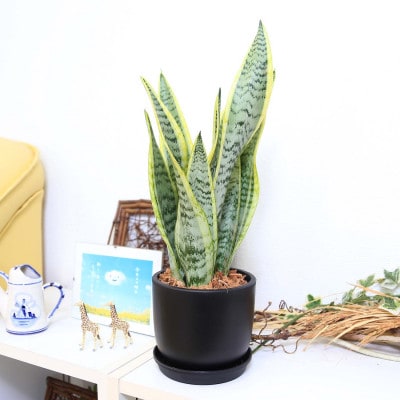 サンスベリア 5号 ブラック丸プラスチック鉢(Bowl)土の表面:ウッドチップ