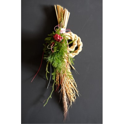 種から育てた有機米でひとつずつ束ねるしめ縄飾り。花材はすべて白川町産。畑、山、森のめぐみを詰め込んだご利益たっぷりのしめ縄です。
