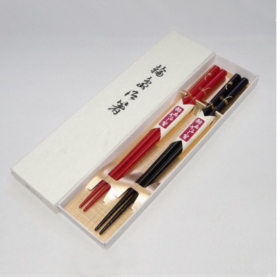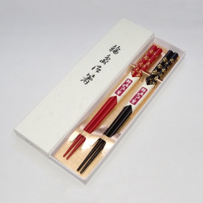 輪島うるし箸 とんぼ蒔絵 ペア(黒・朱) _25045